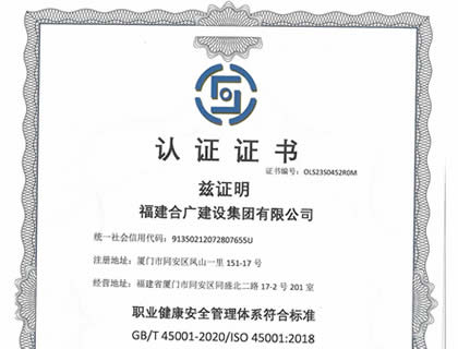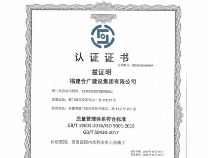 福建合廣建設(shè)集團(tuán)有限公司,注冊(cè)資本5188萬元人民幣,公司位于廈門市同安區(qū)鳳山一里151-17號(hào)。本公司成立于2013年,公司具備市政公用工程、水利水電工程、房屋建筑工程、公路工程、園林綠化等多專業(yè)施工資質(zhì)。企業(yè)從業(yè)人員100多人,各類專業(yè)技術(shù)人員70多人,其中高級(jí)職稱8人,中級(jí)職稱40多人,一級(jí)建造師6人,二級(jí)建造師15多人。